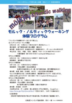 北海道フィンランド協会から、ノルディックウォーキング・モルックイベント開催のお知らせです。